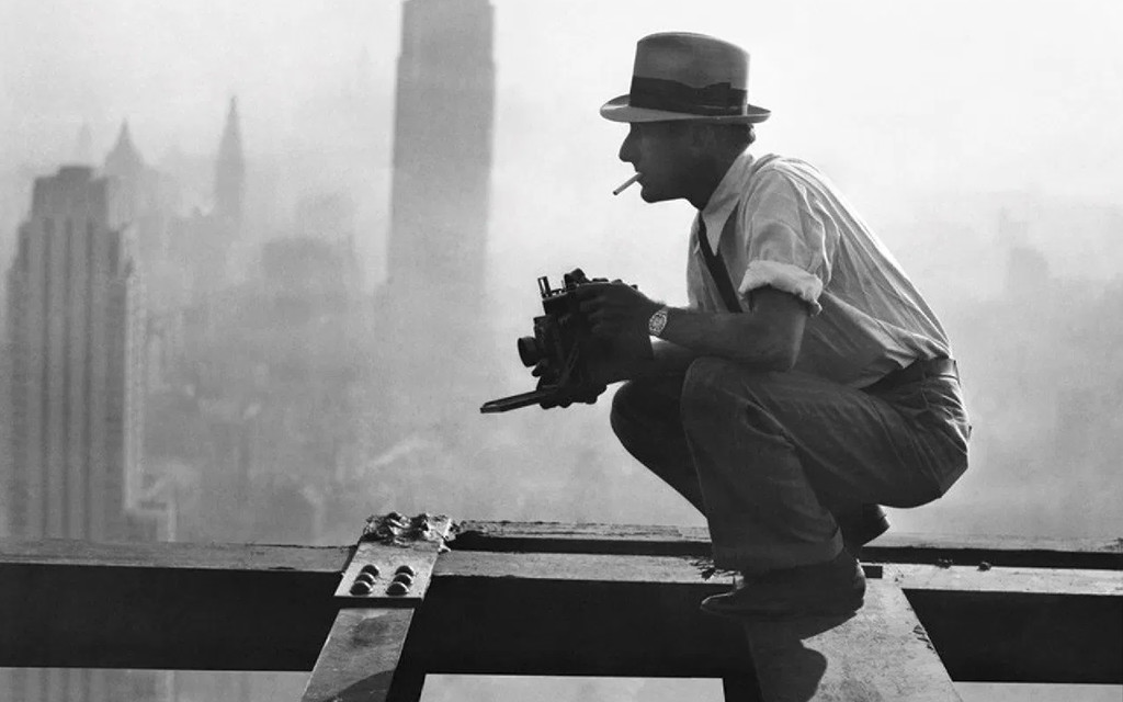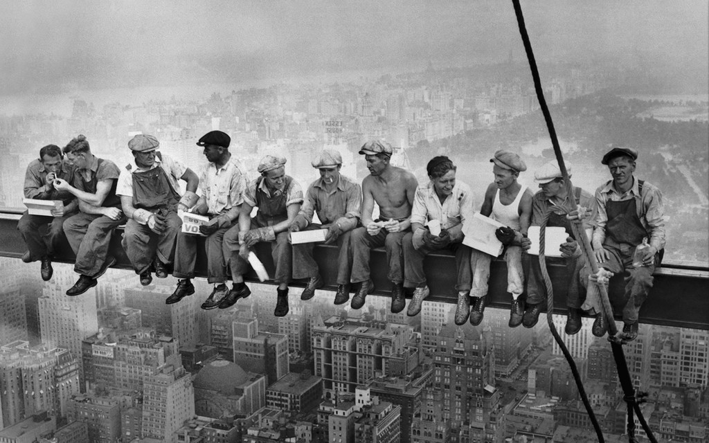 Es una de las fotografías más famosas de los tristemente famosos años de la Gran Depresión. Once hombres sentados en una viga en lo alto de un rascacielos en el momento del almuerzo. ¿Es real o es una composición? No se sabe mucho de su origen pero ha generado mucha literatura y leyenda a su alrededor. Hoy lo único que nos queda de ella es un negativo de cristal roto y la duda de su autoría.