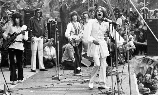 Uno de los momentos más trascendentales de aquel concierto y que generó reacciones que vemos en estas fotos vintage, fue cuando Jagger leyó un fragmento del poema de Shelley «Adonaïs».